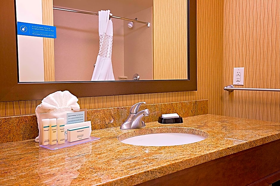 This accessible room features a flat-screen cable TV, small refrigerator, and coffee-making facilities.